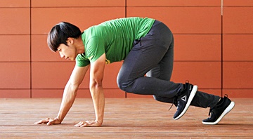 네발 짐승처럼 걸어다니면 자연스레 척추와 소화기를 비틀어주어 위의 활동에 도움을 줍니다.